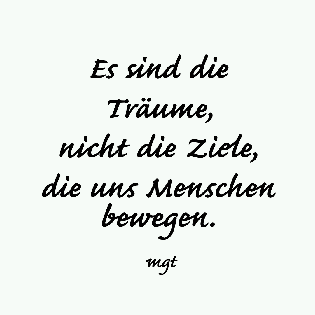 Nimm dir heute – ja, JETZT vielleicht – einen Moment Zeit, um dem nachzuspüren, für das du einmal branntest und immer noch brennst. Es sind die Träume – nicht die Ziele – die uns Menschen bewegen. Dich genauso wie mich und jeden anderen auch.