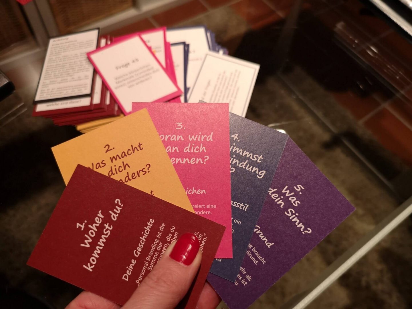 Unter anderem erkläre ich dir dort, wie du mit dem Kartenset „100 Fragen für Personal Branding“ arbeiten kannst: warum genau diese 5 Themen, warum 100 Fragen und wie sollst du damit arbeiten?