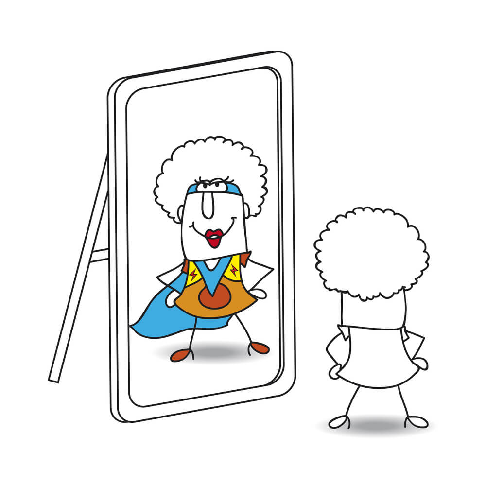 - An Afro girl looks in the mirror. She sees a superhero in the reflection. It’s a metaphor of the power which is in each person